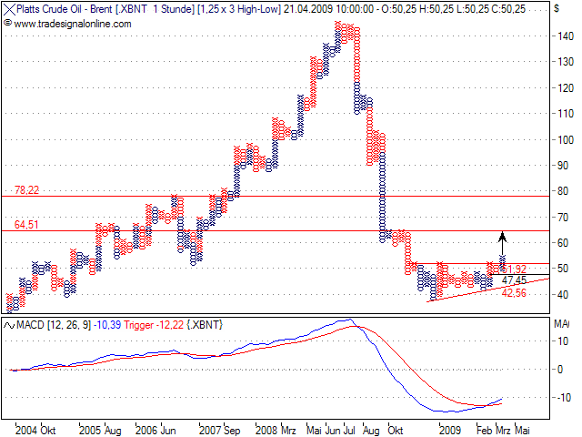 kurse über 52 $ sollten brent öl weiter nach oben ziehen mit ziel 64-65 $, mittelfristig denke ich sind auch 78 $ erreichbar.