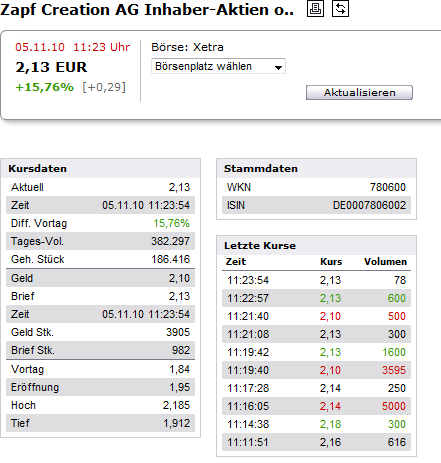 Zapf auf dem Vormarsch in alte Höhen?