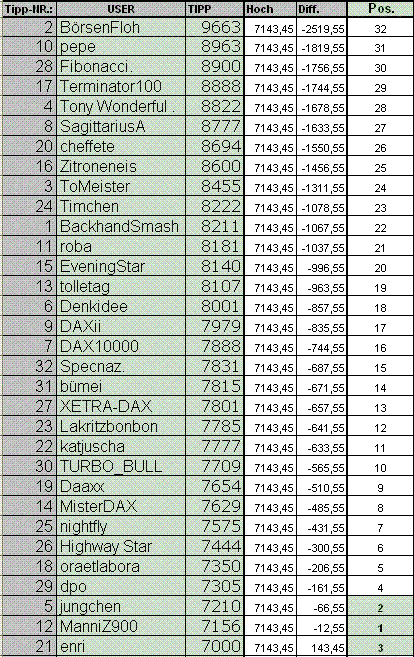 enri mit seinem 21. Tipp....7000.........Abweichung: 68,78