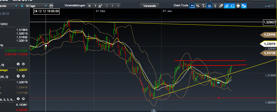 Man sollte sein Glück nicht zu sehr herausfordern. Ärgere mich jetzt etwas über den zu vorschnell geschlossenen Trade von heute früh, aber diese Punkte gaben mir die Sicherheit an meine Annahme mit 1,3130 festzuhalten.