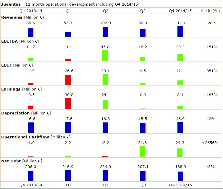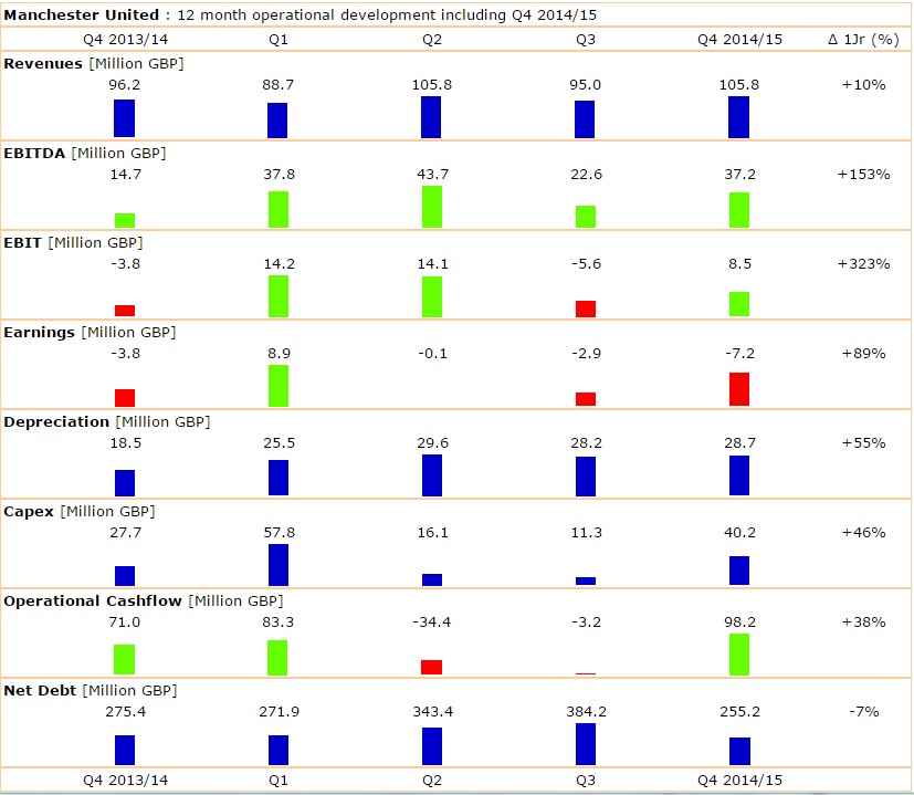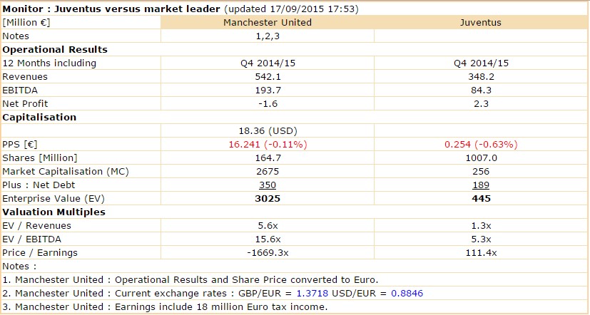 die Zahlen im Quartalsvergleich Morgen bringt ManU ihre Jahresbila­nz und kann ich belegen dass der Bewertung von Juve gar bei einem Kurs von 1 Euro im Vergleich immer noch moderat wäre.