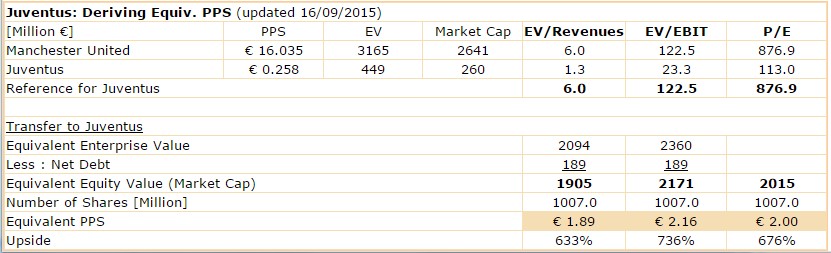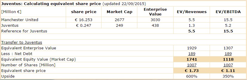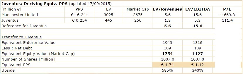 Der Kurs von Juve könnte vervierfac­hen und man wäre immer noch günstiger als  ManU bewertet