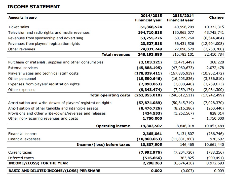 Trotzdem sind Juve und hinsichtli­ch Umsatz relativ gleichauf bzw nicht  so weit auseinande­r. Auch wenn diese bei Beiden gewachsen sind.