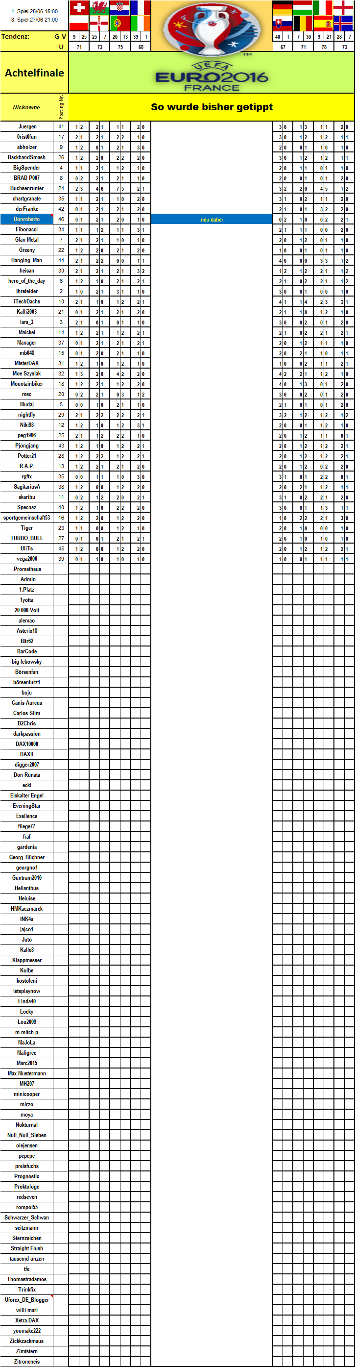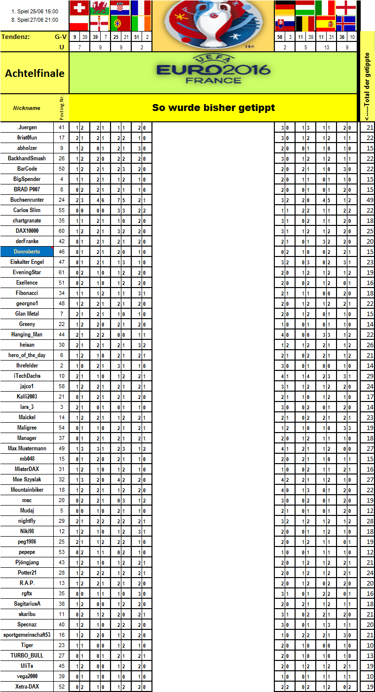 Achtelfinale vom 25.06. bis 27.06. 2016
