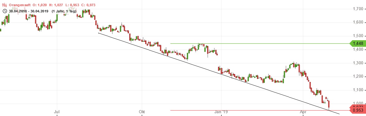 Über einen Longeinstieg sollte man noch nicht nachdenken, außer wenn man kurzfristiger Zocker ist (und auf die techn. Gegenreaktion setzen möchte). Ich würde die Bodenbildung und Trendumkehr abwarten und dann erst long gehen, sonst ist das Geld unnötig lange ohne Rendite geparkt. Orangensaft ist jetzt vielleicht eine Ausnahme, da es recht volatil ist. Aber unter Umständen kann so eine Bodenbildung und Trendumkehr Monate oder sogar Jahre dauern (Seitwärtstrend).