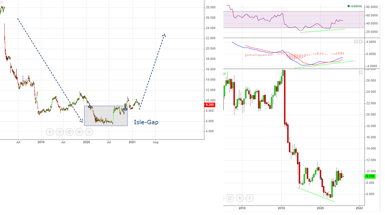 SHS mit 2,70 Eur range... Kopf zu neck... breakdown hier bei 9 Eur bringt uns zu einem technsichen Zeil bei 6,30 Eur bzw. Gap-Schließung @ 6,10