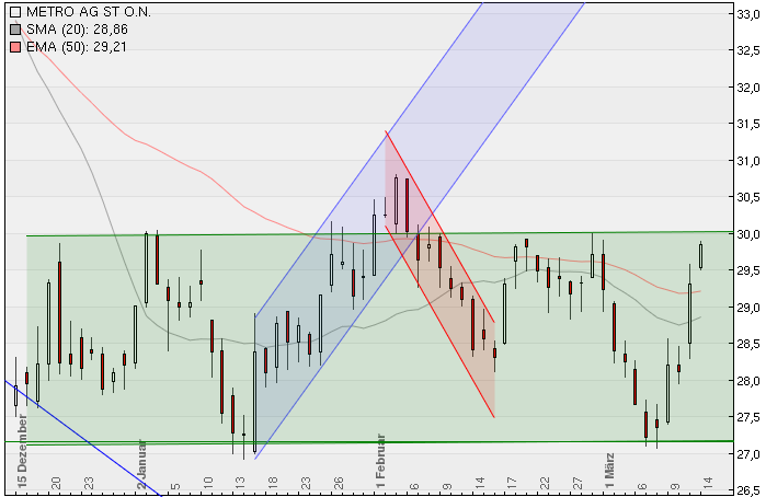29,9 und 30,8 das sind die beiden nächsten Widerstande , über 30,8 wäre ein erneutes kaufsignal...