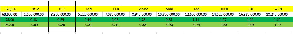Scheint sie Simulation gar nicht so falsch zu liegen, mit den 60000 Downloads täglich bzw. proportional dazu - die Einnahmen mit Hebel 1,3 aktuell.