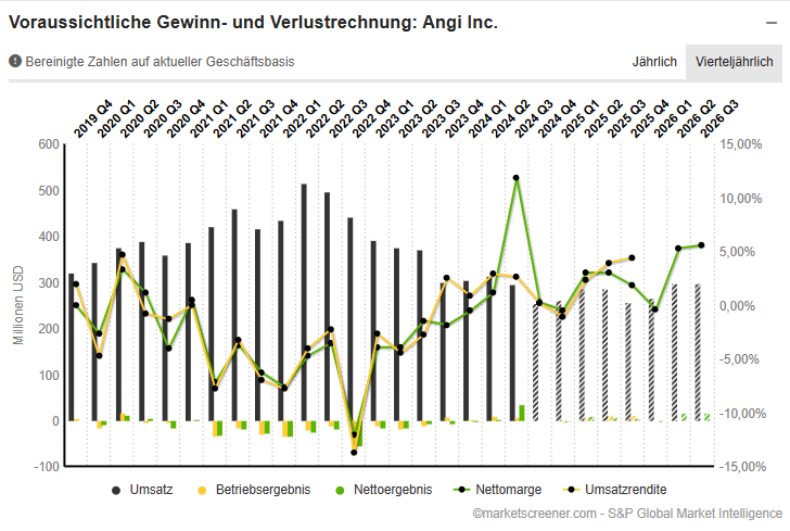 Q4 und Q1 werden nochmals recht schwach ausfallen bei Angi mit deutlichem Umsatzrückgang,