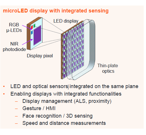Bei microleds is auch, dass ob der kleinen strukturgrösse massig real estate auf dem wafer verfügbar ist, um sensoren unterzubringen. Es wird mannigfaltige lösungen geben. Und ich glaube ams osram ist auch in apple glasses drin, mit near eye projection.