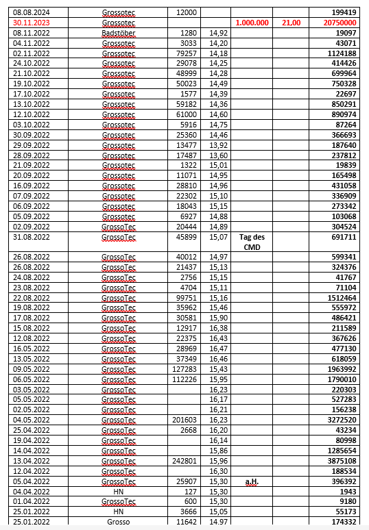 - Etwas verblüffend, wenn sich Herr Wieczorek angesichts seines Alters aus der GrossoTec als Aktionär zurückziehen will, aber gleichzeitig mit 12.11.2025 zum Vorstand der Gesellschaft bestellt wird!!!!