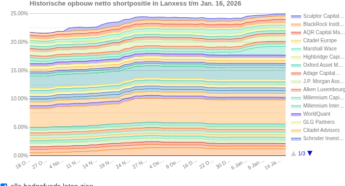 Wenn ich unter www.shortsell.nl mir die Short Positionen bei Lanxess anschaue, bekomme ich per 16.01.2026 "nur" 13,57 % angezeigt. Bei Deiner Ansicht sind es ja knapp 25 %.