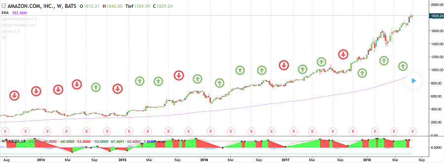 Es geht ausschließlich um die Woche nach den Zahlen. In den letzten 5 Jahren hatten wir nach den Zahlen, 8 negative Wochenkerzen, und 12 Positive Wochenkerzen beim AMZN. Die Chance das also die Wochenkerze nach den Quartalszahlen positiv sein wird, ist höher, als die Wahrscheinlichkeit das wir eine rote Wochenkerze haben werden. Allerdings hoch spekulativ!