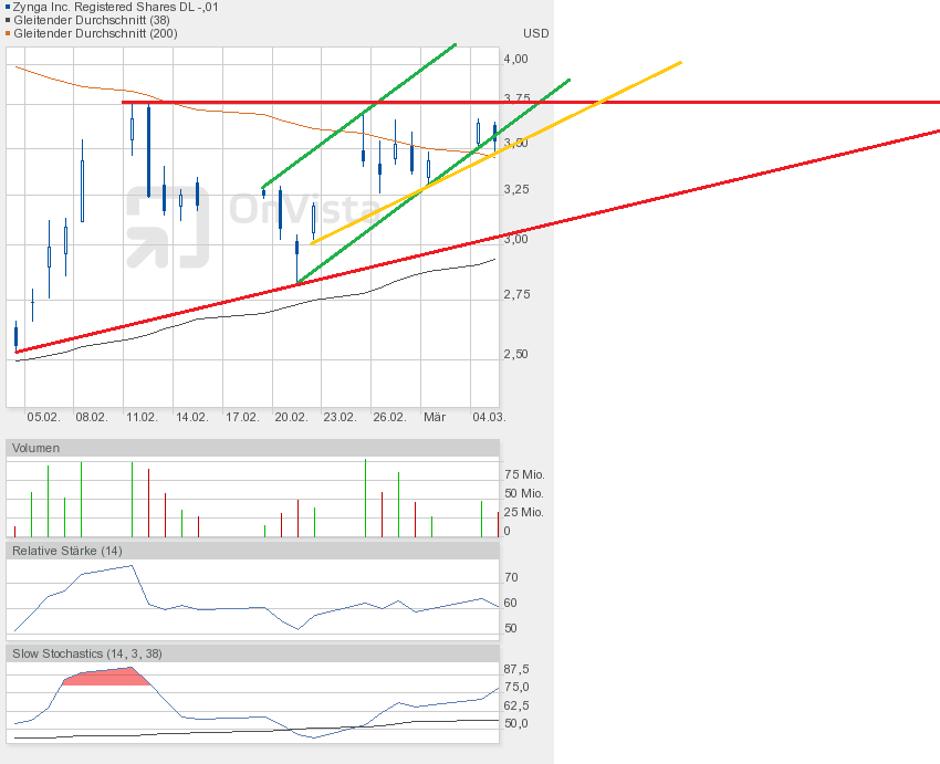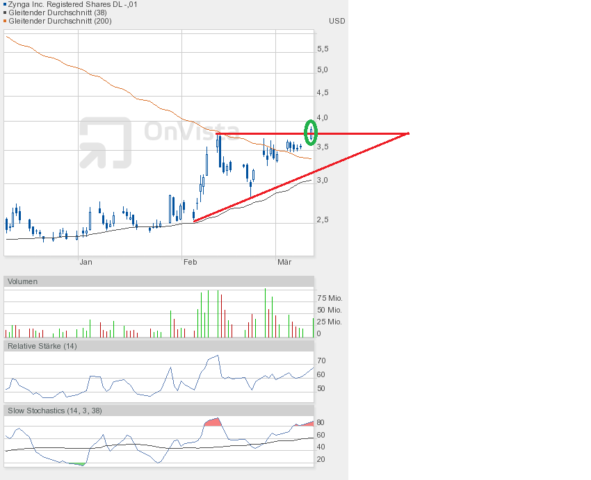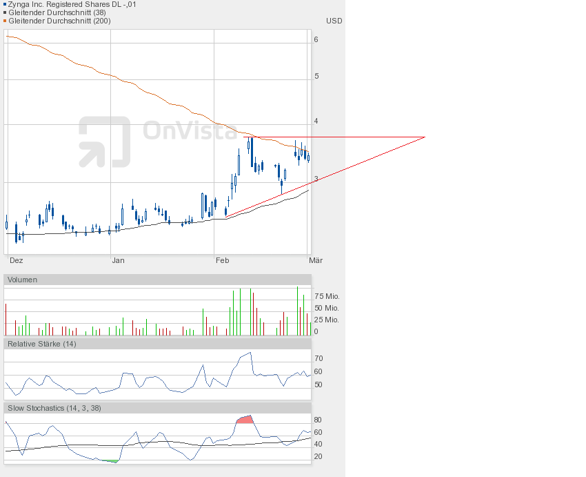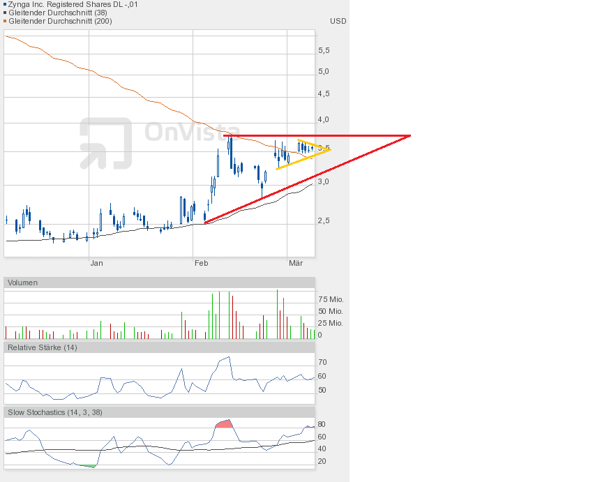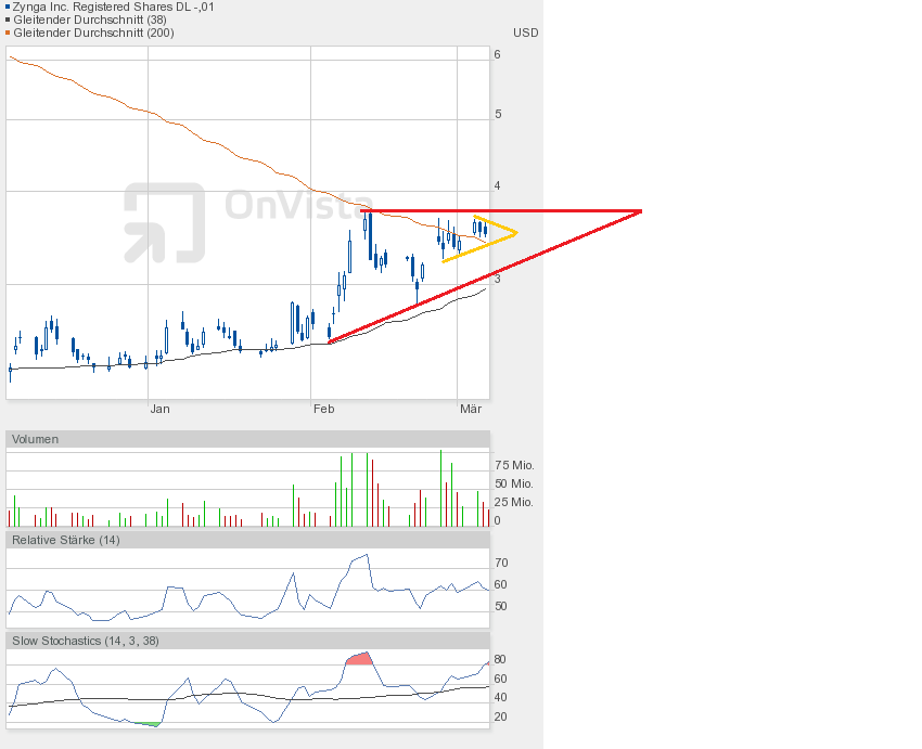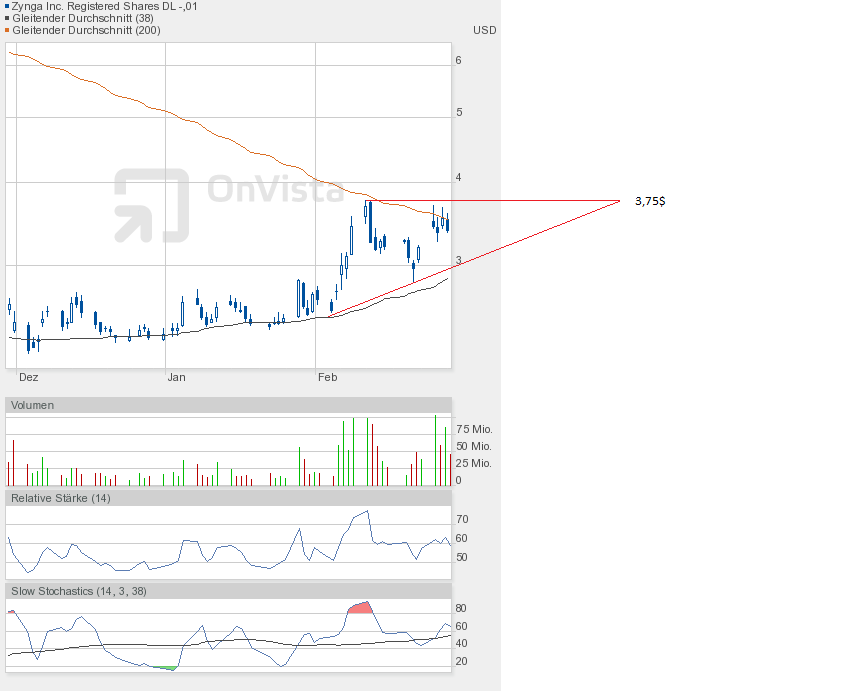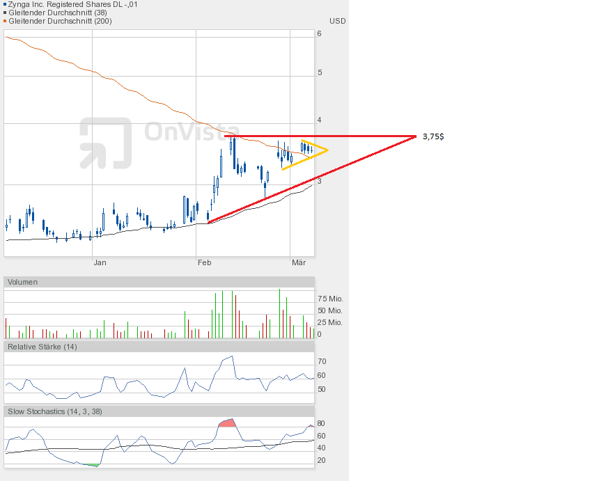 Die 200-Tage-Linie will auf Schlusskursbasis einfach nicht fallen. Aber kommt Zeit, kommt Rat. Der Keil zieht sich immer weiter zu. Also wird es in Kürze einfach mal einen lauten Knall geben. Und dann steigt Zynga hoffentlich über 3,75$.