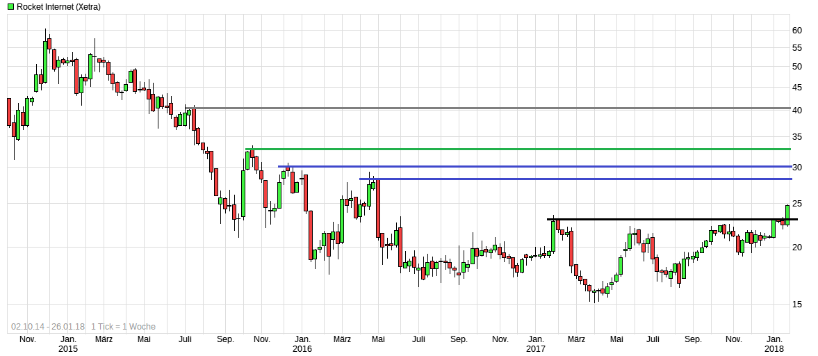 Nach dem starken kurzfristigen RUN seit Anfang des Jahres von Rocket Internet gaben diese in der vergangenen Woche im Zuge des starken Rücksetzer wieder einen Teil der bisherigen Jahresgewinne ab.