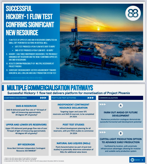 highlighti­ng our successful­ flow test at Hickory-1 discovery well