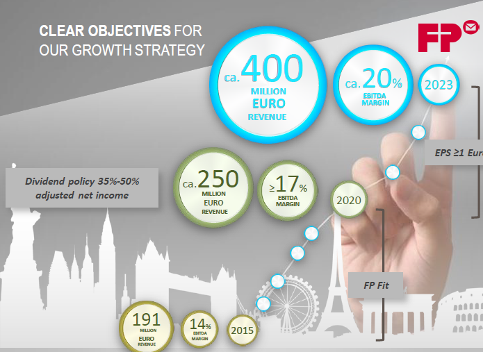 Jedenfalls hier nochmal Günnis Ziele von vor ziemlich genau 4 Jahren. Damals hat er für 2020 also 250 Mio € Umsatz bei 17% Ebitda erwartet, also 42,5 Mio Ebitda konkret. Jetzt werden es trotz Übernahmen und trotz IFRS, das beides das Ebitda treiben müsste, nur wohl etwa 25 Mio €. Dafür wird sich Günni sicherlich nicht feiern können, auch wenn gerade im Kernbereich von FP nicht alles so schlecht lief wie der Finanzmarkt es macht.