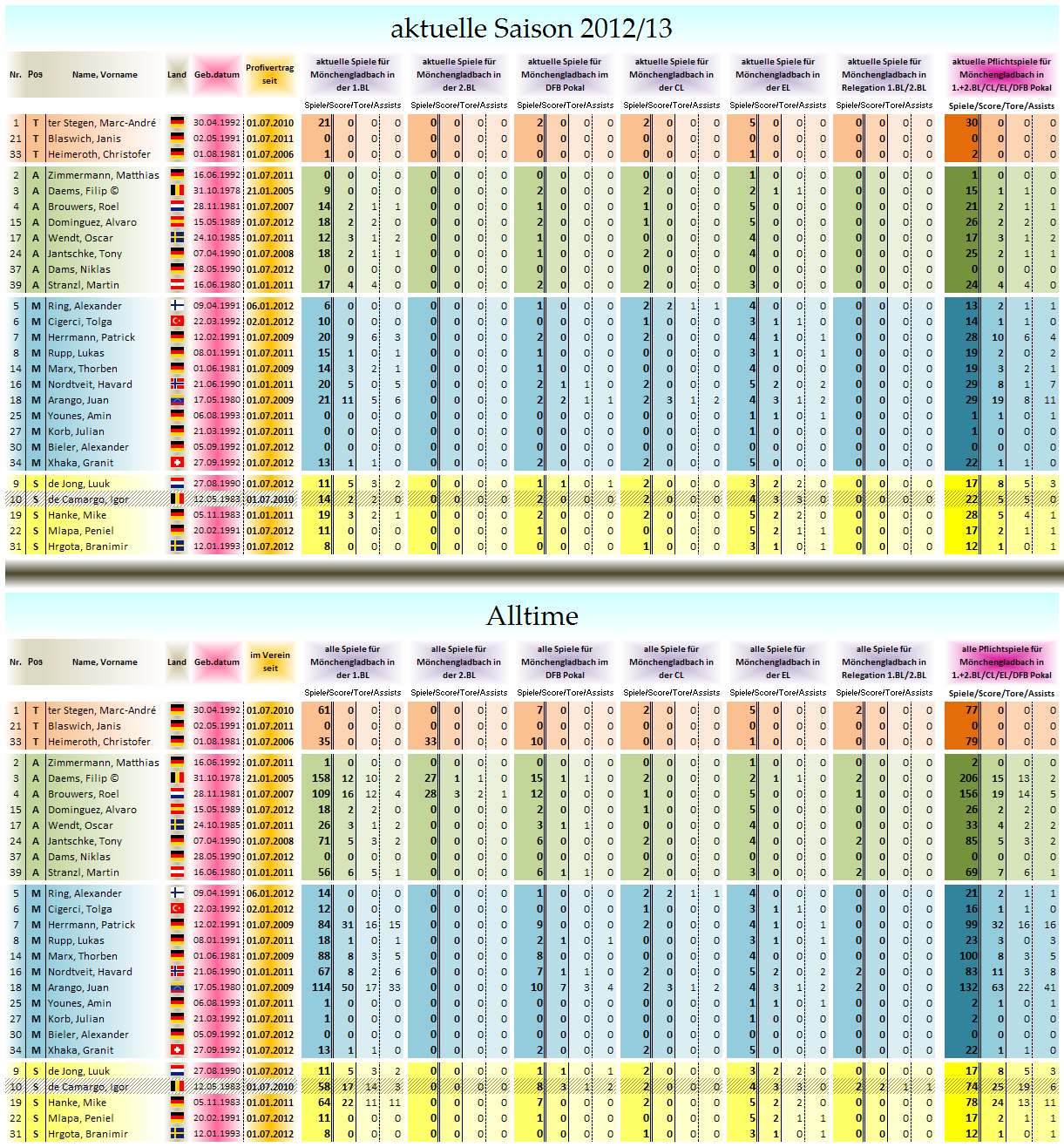 Tore: 1:0 Stranzl (44., Nordtveit); 1:1 Sam (52, Kießling); 2:1 L. de Jong (58., Arango); 2:2 Kießling (60., Boenisch); 2:3 Schürrle (64., Castro); 3:3 Herrmann (86., Brouwers)