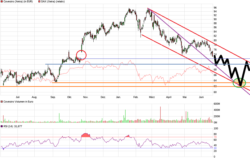 Ob die vielen Chartanalysen helfen ist m.E. aber die Frage. Wie soll sich Covestro vom Allgemeintrend lösen können? Ich kann mir nicht vorstellen dass die Charttechniker mit ihren Volumen, die ETF Volumen beeinflussen können. Immerhin ist Covestro nun ein DAX Wert und der Wird verkauft wenn ETF´s verkauft werden, ob es nun fundamental Sinn macht oder Charttechnisch passt oder auch nicht. - Leider !!