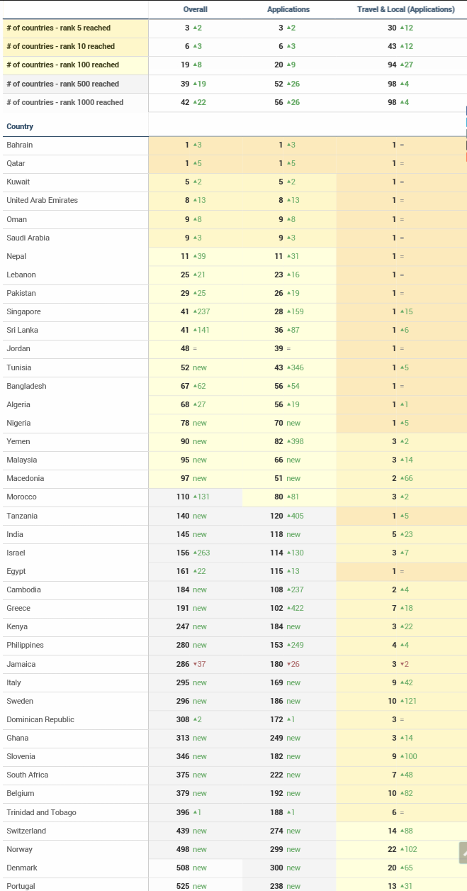 Mittlerweile 18 Länder auf #1...im Vergleich zu #592.