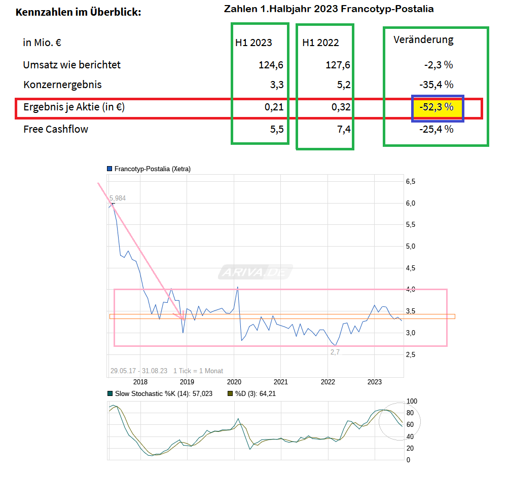 Francotyp-Postalia: Sinkendes Zins- und Finanzergebnis belastet Gewinn -23.11.2023 https://www.4investors.de/nachrichten/...?sektion=stock&ID=173613 "...Francotyp-Postalia Holding meldet einen Umsatzrückgang von 3,3 Prozent auf 182,5 Millionen Euro für die ersten neun Monate des Jahres 2023 bekannt, verglichen mit 188,7 Millionen Euro im Vorjahreszeitraum. .....Unter dem Strich sinkt der Gewinn des Unternehmens allerdings spürbarer. Für die ersten neun Monate 2023 meldet Francotyp-Postalia einen Überschuss von 4,5 Millionen Euro nach 6,1 Millionen Euro zuvor. Dies entspricht je Francotyp-Postalia Aktie einem Gewinnrückgang von 0,38 Euro auf 0,29 Euro. Begründet wird dies vonseiten der Gesellschaft mit einem rückläufigen Zins- und Finanzergebnis..."