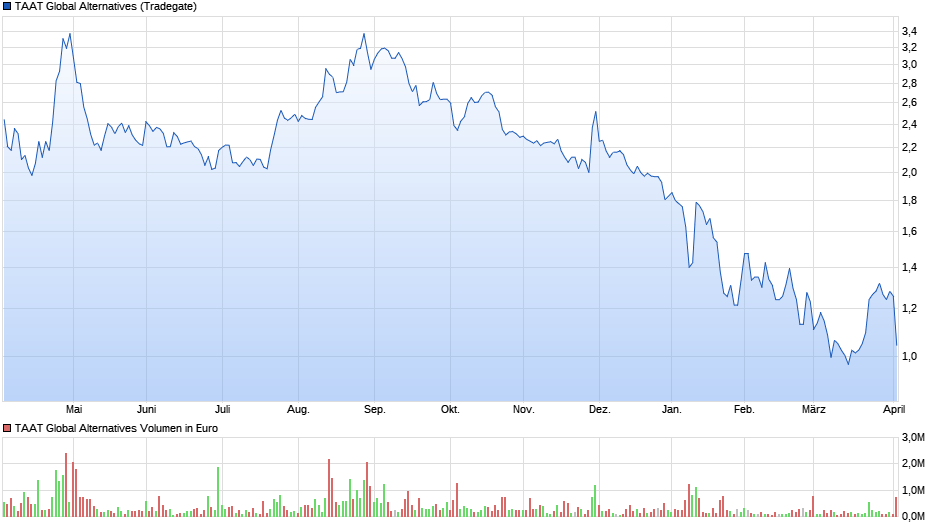 Ich habe noch keine Ahnung weshalb es heute schon wieder mit gut 20 % Minus so zart über die Wupper geworfen wird , bin mir aber ziemlich sicher das es an tollen Zahlen aus der Firma ,einem neuen Starinvestor oder einfach neuen und unvorstellbar coolen Nachrichten aus der Chefetage bei TAAT liegt.