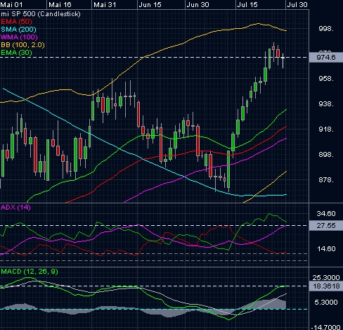 Walter Murphy, ein angesehener unabhängiger technischer Analyst, ist der Ansicht, dass der Aufschwung noch bis Ende Juli dauern kann, doch erwartet er dann eine Abwärtsbewegung, die sich mindestens in den September hinein erstrecken kann. Als Nahziel für den S&P 500 sieht Murphy den Bereich von 956 Punkten. Sollte es überschritten werden, könne der Index in die Zone zwischen 1007 und 1048 Zählern anziehen. Der technische