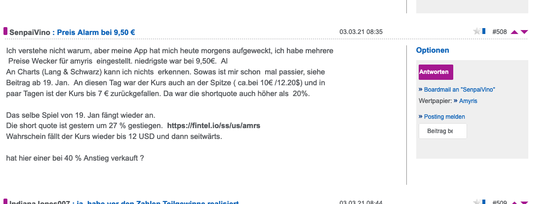 Aus meiner Sicht sind die strategischen Asset Sales keine Notverkäufe. In der Vergangenheit wurden diese Sales von Amyris aber immer als solche gewertet. Das liegt natürlich auch an der Vergangenheit. Ich glaube Amyris versucht neben dem B2C-Geschäfts noch zum Innovationscluster zu werden. Weil sie aber nicht so schnell mit der eigenen Produktion hinterher kommen, machen sie das Geschäft über Profit Shares und nutzen damit die Kapazitäten von anderen großen Unternehmen. Also ich kann den Schritt verstehen. Ich bleibe hier Long und beobachte jetzt erst mal die Shorts. Da werden sich wohl einige eindecken müssen.