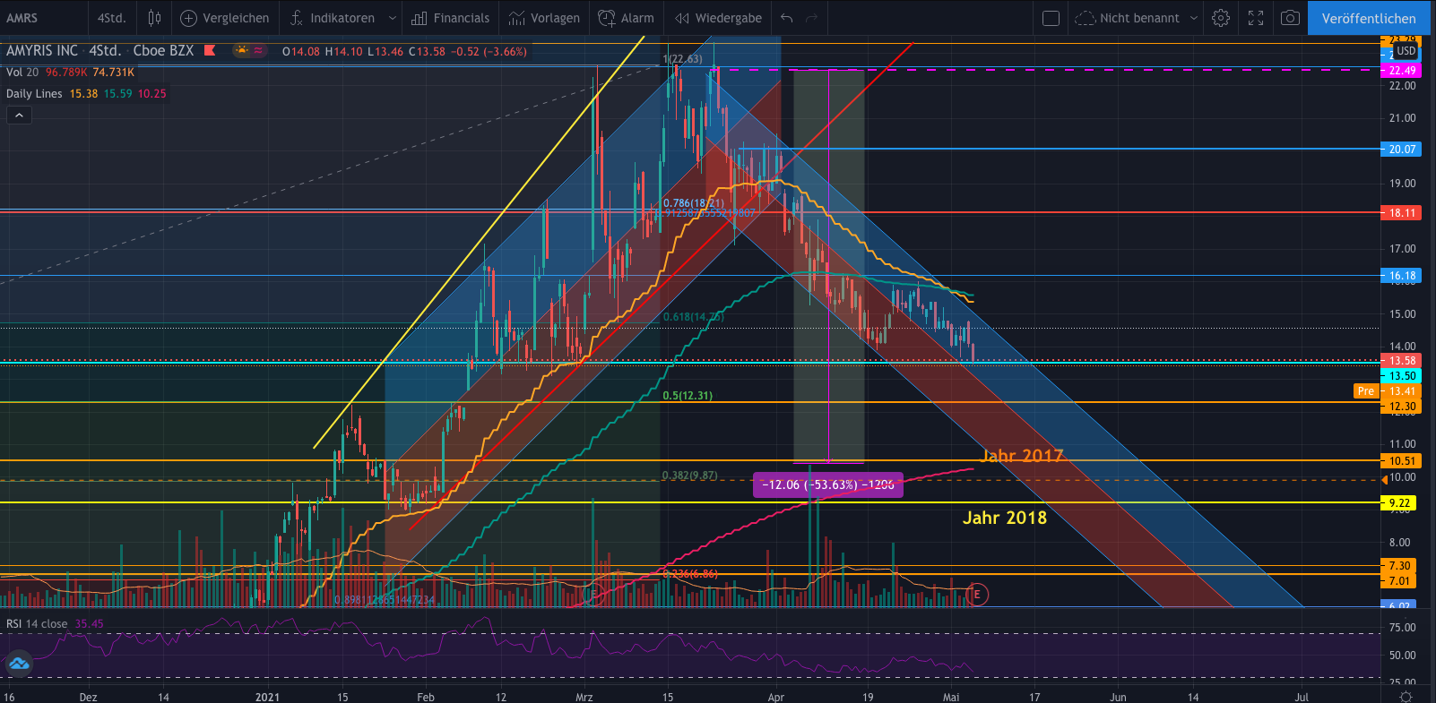 das wäre mein wörst-cäse Szenario, mal schauen wie die amis heute reagieren. Wie gesagt ich bleibe investiert, bin schon 50% in Verlust! Schaue dir die anderen Aktien, die letzten monate gehypt waren, viele sind bis 200er linie gefallen, dient als Unterstützung. Hat jemand relevante Informationen über Amyris, also was fundamentales? Solange Amyris so weiter macht, bleibe ich investiert.