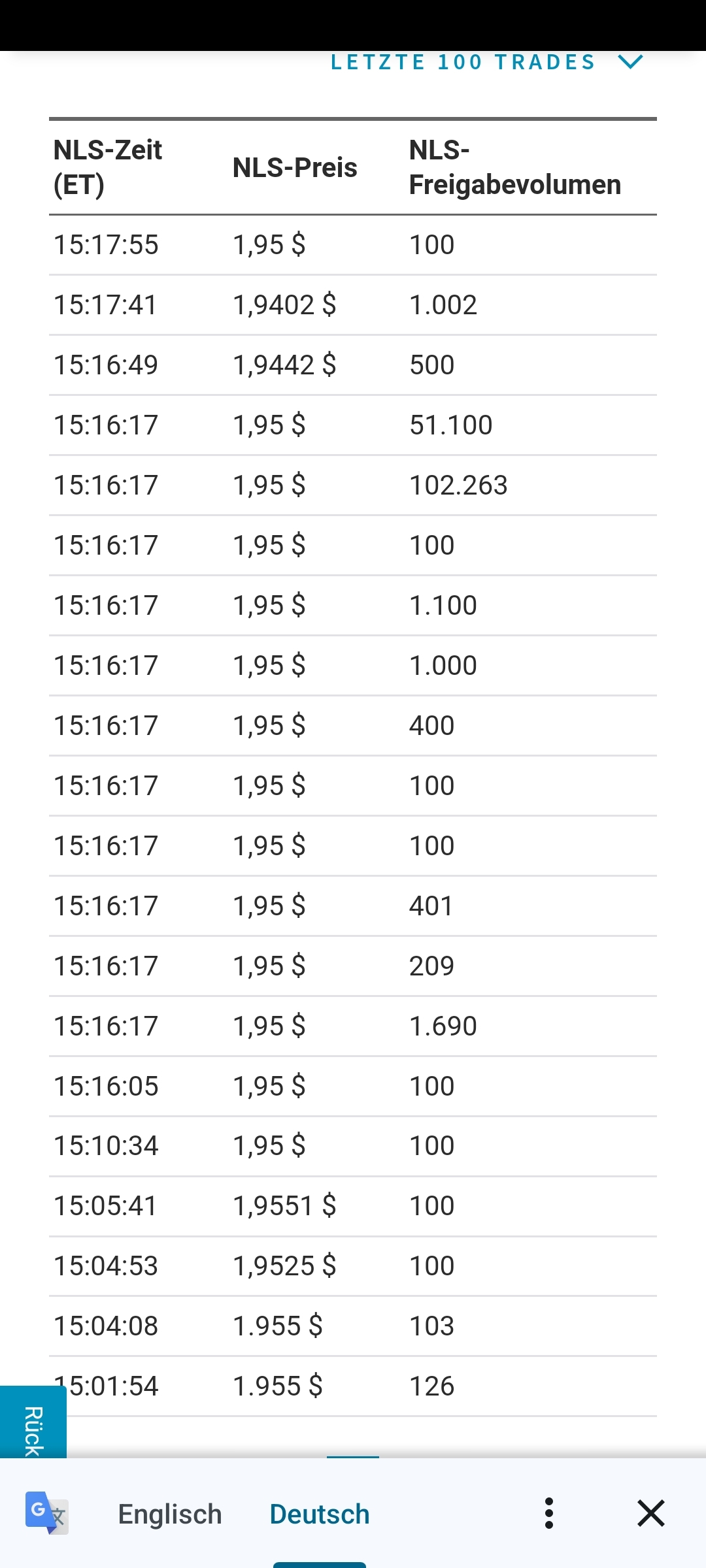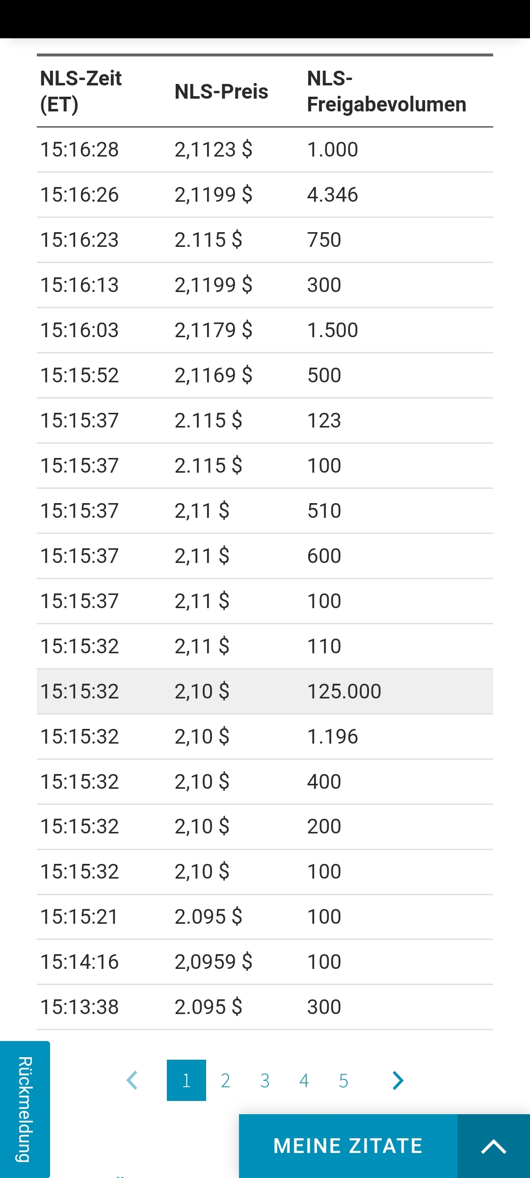 wow das war ja gerade eine Short Atacke runter auf 2.0$ und gerade wieder bei 2.15$ gerade in 2 Minuten Handelszeit. Mal schauen was der Tag bringt. Die Kurse machen die big boys eben.