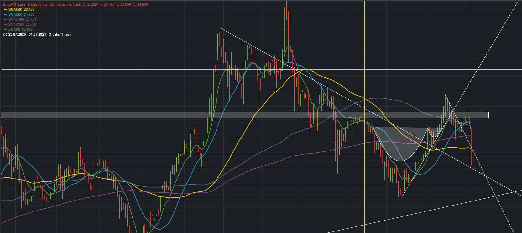 Eine Aktie, welche von fast 34 auf 20 um 40% gefallen ist, macht auch mal eine Gegenbewegung, und wie @Lehna schon geschrieben hat, der Deckel bei 26 wiegt schwer, mal sehen ob es LPKF es darüber schafft, das wäre ein echtes Kaufsignal.
