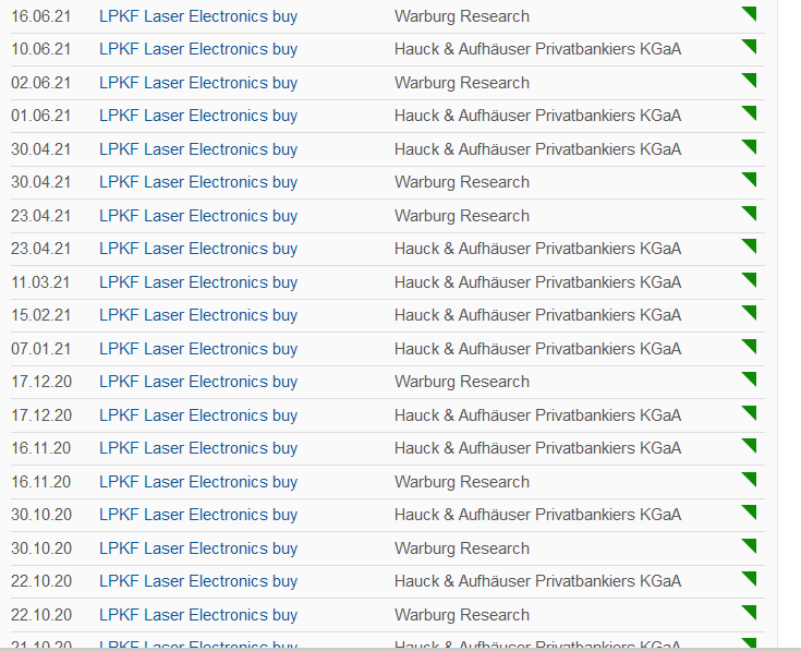 Seit über 15 Monaten ist es nur Hauck und Aufhäusser, und gelegentlich Warburg, die überhaupt ratings für LPKF abgegeben haben. Diese positiven ratings haben den Kurs getrieben, das war allen Recht. Jetzt wird H&A erfahren haben dass es dieses Jahr nix wird mit dem Großauftrag, und rudert zurück. Vor diesem Hintergrund finde ich das Kurziel von 40 übertrieben, aber die private Anlegern vertrauen drauf und kaufen.