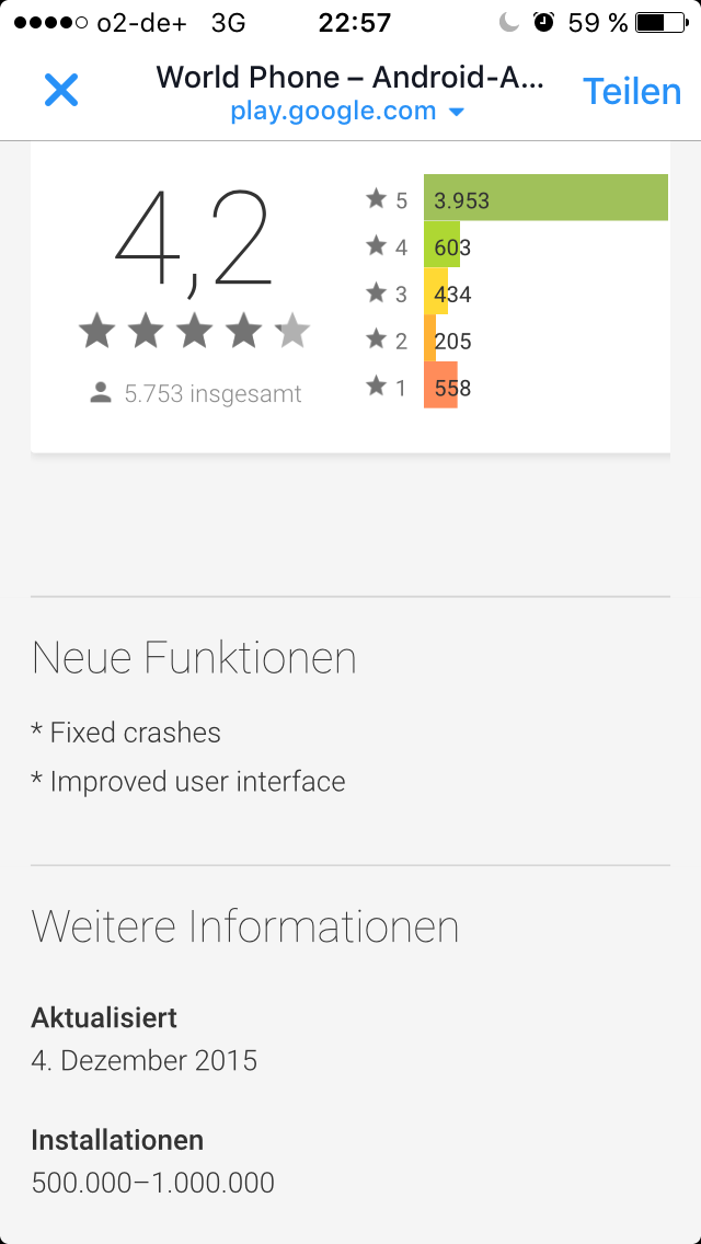 In einer Woche über 500000 Downloads bedeutet in Summe mit IOS 100000 Downloads täglich...