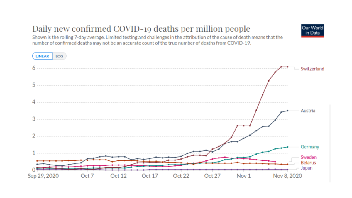 Gott sei Dank, gibt es Länder, die lange nicht so viele Maßnahmen getroffen haben. Weißrussland, Japan, Schweden und einige afrikanische Staaten gehen ganz andere Wege. Auch China hat bei 96% der Bevölkerung keinen Lockdown verhängt und so gut wie keine Toten zu beklagen (und das bei 1,4 Mrd. Menschen).
