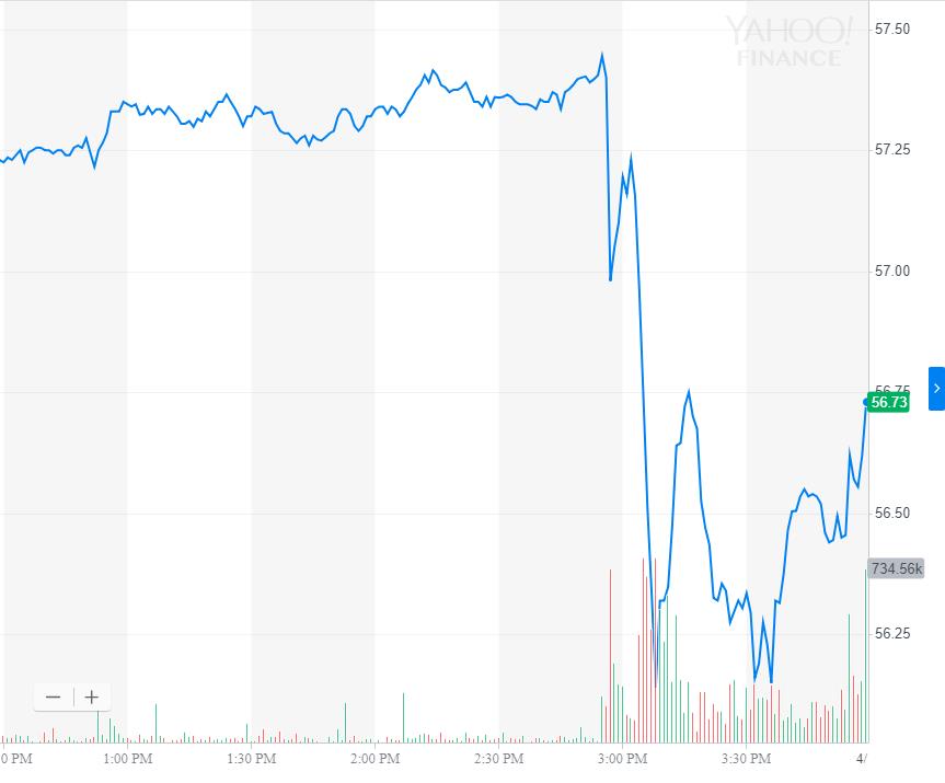 der Grund warum die Intel Aktie gestern innerhalb von Minuten von 57,47 auf 56,14 einbrach war die Einigung von Apple und Quarlcomm.­