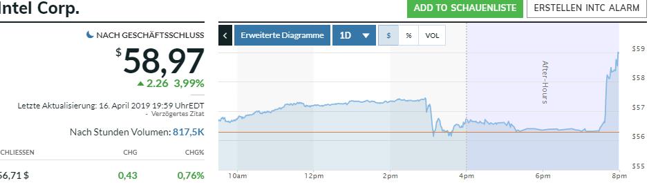 Intel Nachbörslich am 16.4.19 Nachbörsli­ch der Kursanstie­g