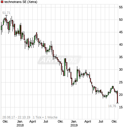Technotrans: Was für ein Debakel - October 22, 2019 -https://boersengefluester.de/technotrans-was-fur-ein-debakel/ "...Noch am 10. Oktober 2019 berichtete Technotrans auf dem Capital Markets Day in allen Facetten über die aktuelle Entwicklung des überwiegend im Bereich Kühltechnologie tätigen Unternehmen – um dann 12 Tage später mit einer saftigen Gewinnwarnung für das laufende Jahr die Investoren zu schocken.
