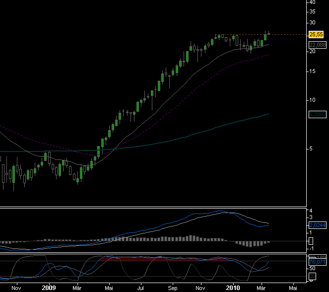 Persönl. Anmerkung: Bin gespannt, wie es weiter geht und ob die Aktie bald über die 26 hinauskommt und wie weit sie nach unten ausschlägt an schlechten Handelstagen.