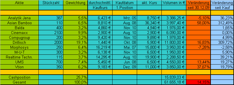Angefixt durch die hier geführten Diksussionen mit erkacol und inspiriert durch deinen Thread Katjuscha, habe ich mich entschlossen mein Depot ebenfalls offenzulegen (rückwirkend seit 2008), um etwas zielgerichteter diskutieren zu können.