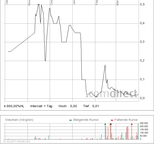 dass der Kurs so schnell anspringt. Etappenziel 0,25 € (entspricht ca. + 1.000 %!)