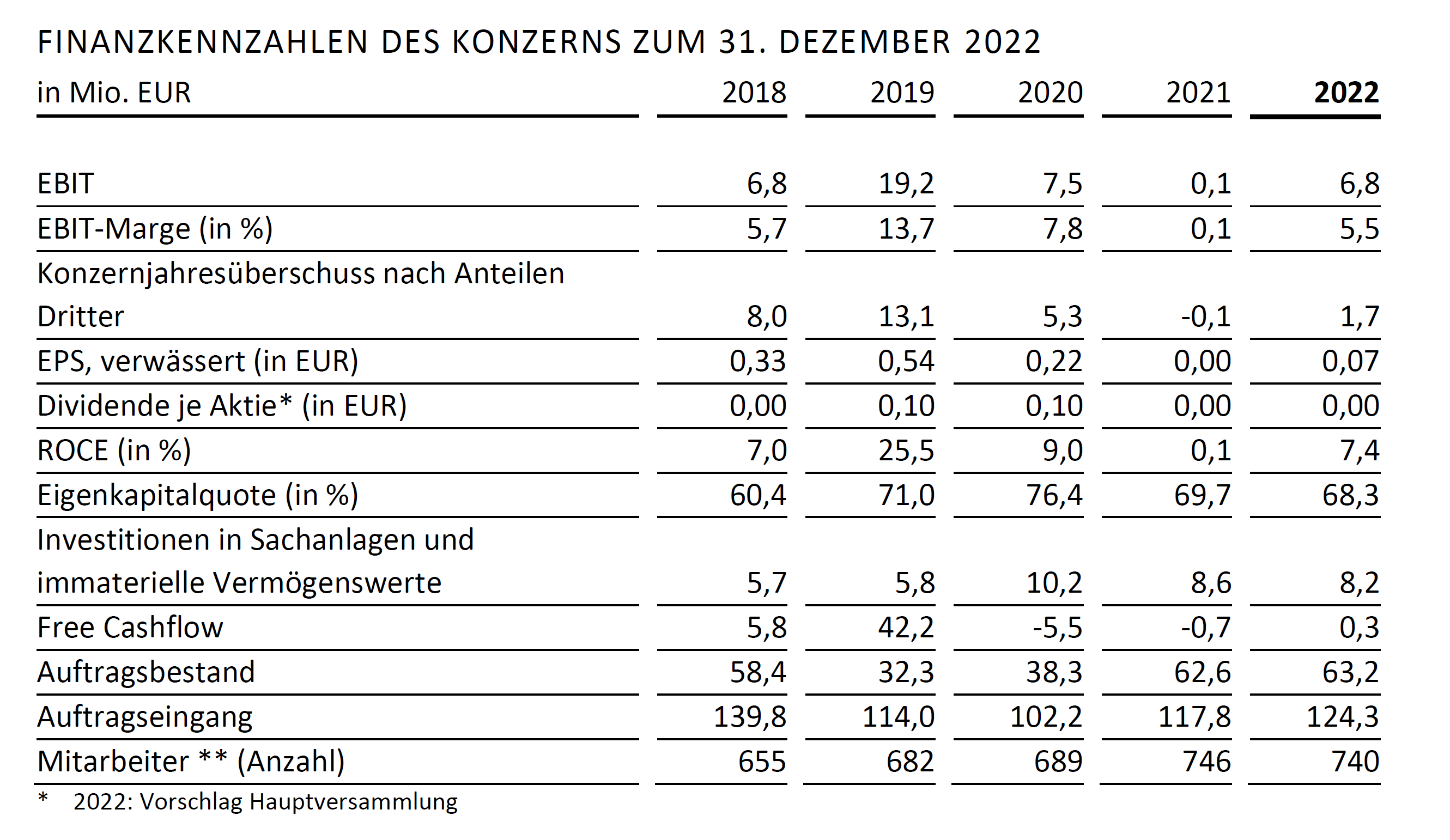 Selbst 2018 war besser als die Prognose für 2023, und wie war der Kurs damals? Ach ja 5 , was bei einem Kurs von 9,71 immer noch ein KGV von fast 70 darstellen würde. Das wurde 2018 aber mit 15% weniger Mitarbeitern erwirtschaftet, und die Auftragseingänge lagen um 12 % höher als jetzt.