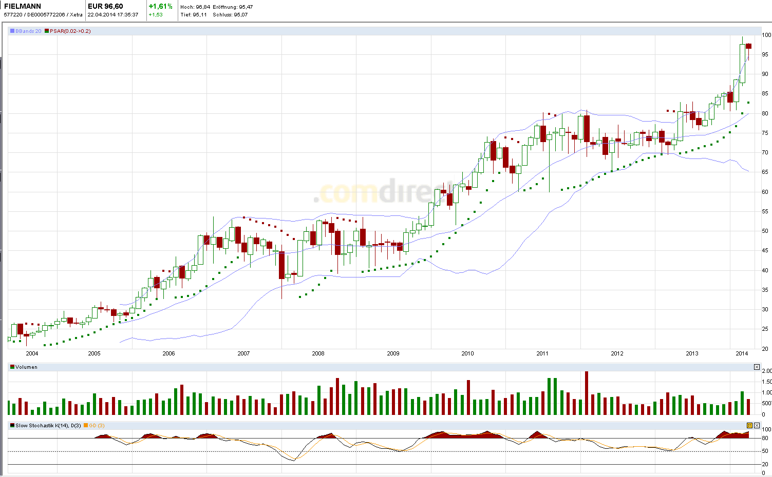 Schön, dass es nach zweijähriger Seitwärtsbewegung endlich wieder aufwärts geht. Fielmann ist eine meiner Lieblingsaktien. Das sichere Geschäftsmodell, die stetig steigende Dividende und das Wachstumspotential im Bereich margenstarker Blei taucht brillen und im Bereich Hörgeräte stimmen mich positiv für die Zukunft. Fielmann ist eine Aktie, die man kaufen kann und dann Jahre im Depot behält. Es ist nur eine Frage der Zeit, bis wir dreistellig sind. Nur ein Aktiensplit könnte das verhindern ;-)