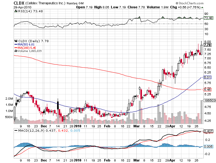 Celldex läuft gut, Kerx läuft Celldex aber den Rang ab, owbwohl die Pipeline Celldex wesentlich­ voller ist