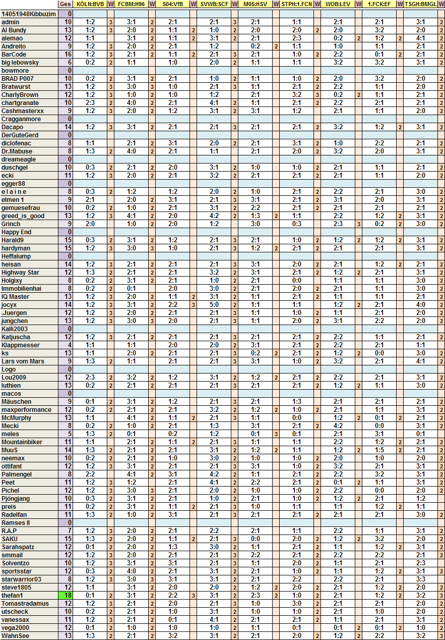 Tagessieger mit Saisonrekord - thefan1 mit 18punkten!!