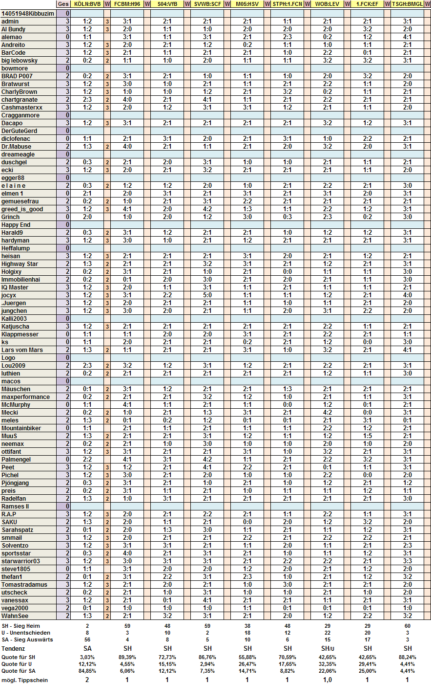 Auswertung Tippschein 8.Spieltag