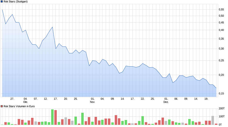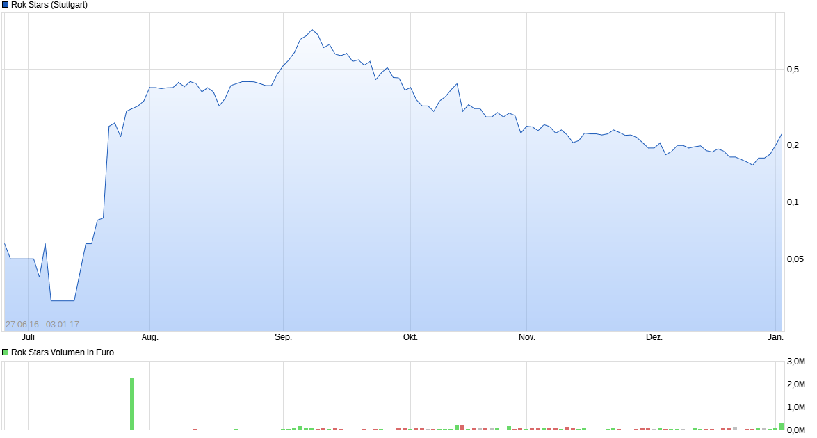 Also ich persönlich werde nächste Woche Aktien von ROK ordern. Da ich selber bei ABK beschäftigt bin, und ich selber gut einschätzen kann wohin der Weg von ROK gehen soll. ROK investiert zur Zeit knapp 2 Millionen Euro in die Aktien Brauerei. Dieses Jahr wurden ohne Softdrinks, ca.85000 Hl Bier produziert und verkauft. Für das Jahr 2017, hat ROK alleine 45000 Hl Bier für den Export bestellt. Das bedeutet das die Bierproduktion um 50% steigen wird. ROK ist seit 3 Jahren Haupteigentümer, der Aktien Brauerei. Und so langsam nimmt das Expirtgeschäft an Fahrt auf. Ich bin der Meinung das die Aktie mittelfristig gesehen steigen wird.