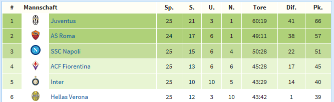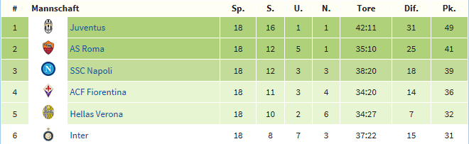Roma sicherte dafür im Zeitraum quasi die CL Teilnahme, dies bei eine satte Italienische Marketpool von 80 Mio.