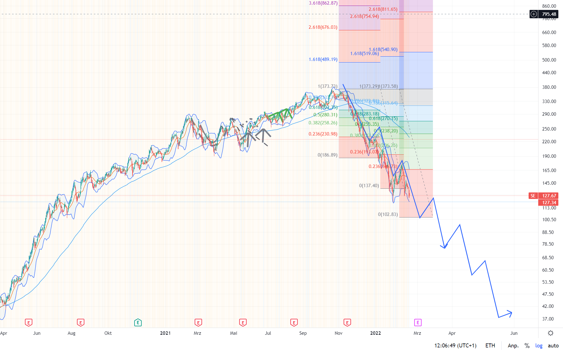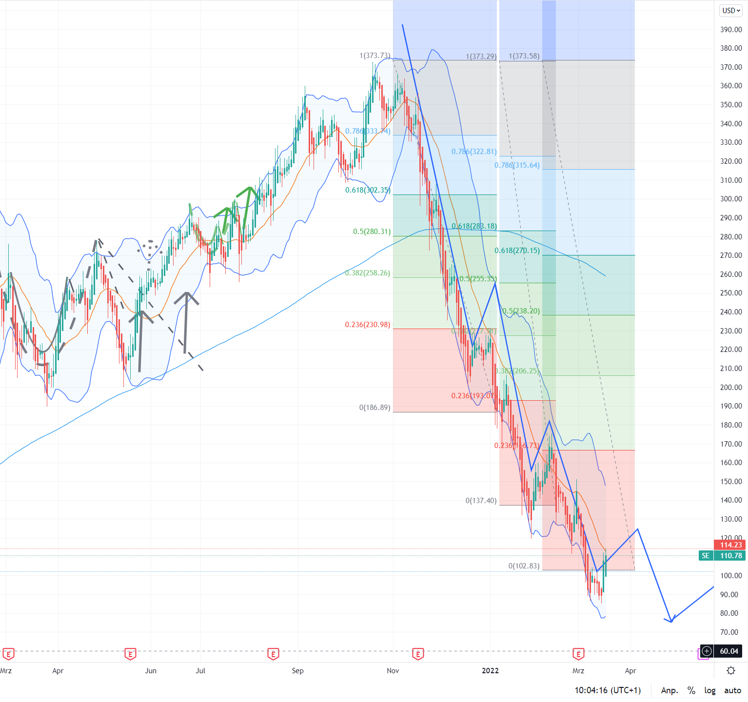 Momentan halte ich den direkten Konkurrenten Alibaba für aussichtsreicher, weil da bereits der dritte Weltkrieg eingepreist ist. Da scheint ein Turnaround auch wahrscheinlicher weil sie der Konkurrenz wieder Marktanteile abnehmen. Sea bleibt bis zur Zinswende März 2022 hochriskant.