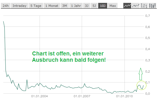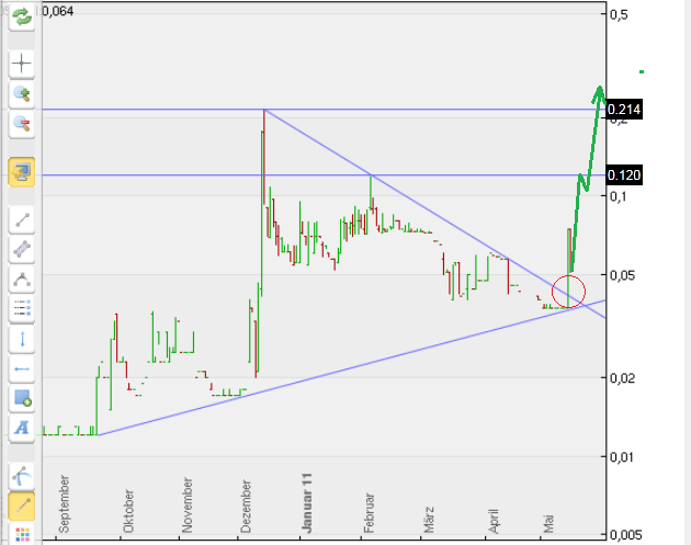 2) Ich favorisiere einen ersten Anstieg bis zum letzten High bei 12 Cent