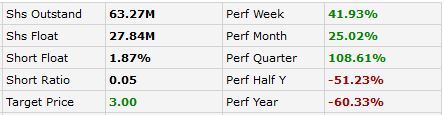 Bin auch mit einer Position dabei. Laut finviz.com liegt das PT bei $3 Dollar.